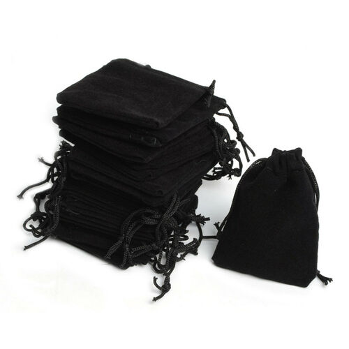 This lot includes 1,000 pieces of Black Velvet Drawstring Pouches 2 x 3"H in Great quality. Measurements 2" X 3 H". Elegant, Well-Made Velvet Drawstring Bags. New Black Velvet Drawstring Jewelry Pouches. New wholesale black velvet drawstring pouches. These pouches HAVE braided drawstrings. They are great for holding chains, bracelets, stones or any other jewellery pieces. GREAT FOR WEDDING FAVORS OR GIFT GIVING.