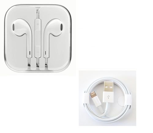 This lot includes different aftermarket 3.5mm Earbuds and Lightning Cables for iPhones. All items are in White colour. All items are new and retail-ready.