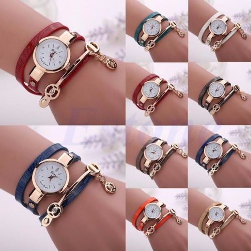 This lot includes New Jewelry; 34 Women's Elegant Rhinestone Pendant Watches. Colours: 6-9 assorted colors as shown in the pictures. Features: Fashionable design is both dressy and casual, Case material: stainless steel, Band material: faux leather, Band length: approx. 20", Case diameter: approx. 1", Analog dial display, and Quartz battery movement.