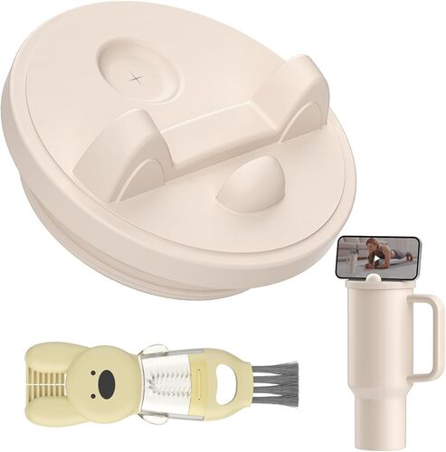 This lot includes 40 Oz Tumbler Lid for Stanley Quencher, a silicone spill-proof splash-resistant tumbler lid with a phone holder, and a tumbler replacement cover with a cleaning brush compatible with Stanley Cup (Cream Holder Lid). Colour: Cream Holder Lid, Material: Silicone, Colour: Cream Holder Lid. Brand: gliship, Item Weight: 4.8 ounces. Shape: Round.
