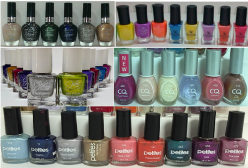 You get a large variety of quality Nail polish at a discounted rate. Each 500 piece bundle comes with a variety of colors in each style. Units are shelf pulls and may contain retail stickers. Large quantities available. Call sales for details. In this lot you will receive: 100 Pieces of CQ Nail Polish 100 Pieces of Julie Nail Polish 100 Pieces of Petites Nail Polish 100 Pieces of Bonita Nail Polish 100 Pieces of Wet & Wild Fergie Nail Polish