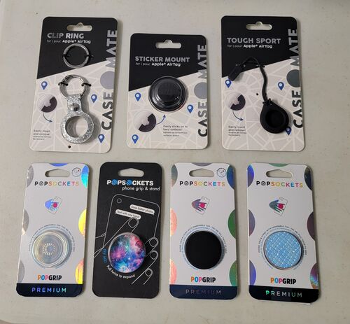 This lot includes New in retail Pack, a Lot of 62 pieces of Popsocks, Wireless Pads, Mounts, Case-Mate & Laut items. See Manifest.