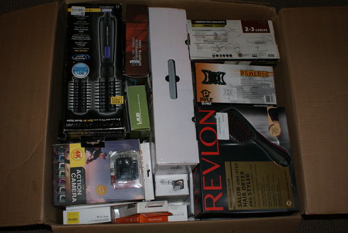 This lot contains a variety of items such as Action Cameras, Cell Phone Printers, TV Wall Mounts, Smart Bracelets, Outdoor HD Antenna, Hair Dryer, Curling Brushes, and More from VuPoint, IPM, Monster, Revlon, and More. Items are in uninspected customer returns condition.