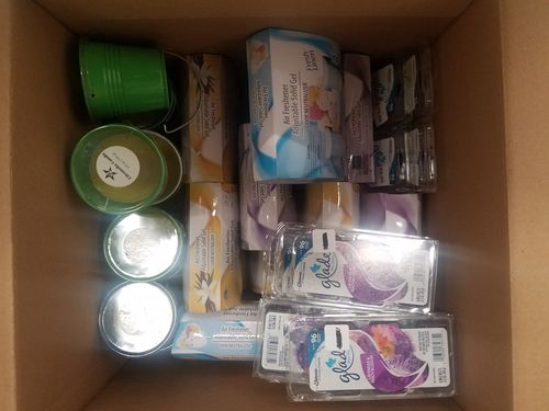 This lot includes different Air Freshener Adjustable Solid Gels, Wax Melts, and Citronella Candles from Glade and KBI Designs. All items are new in original packaging and retail-ready.