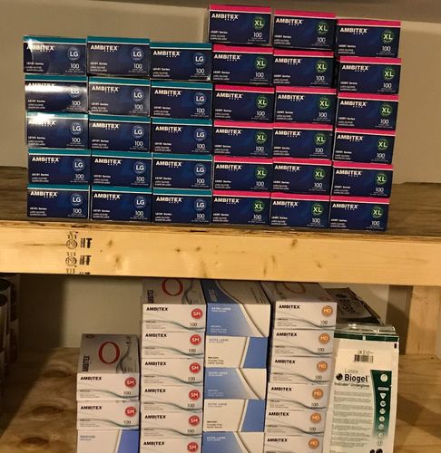 This lot is for Ambitex Latex Gloves, Ambitex Nitrile Gloves & Biogel Surgical Gloves. Includes various styles and sizes, as shown in the images. Each box of Ambitex Gloves contains 100 gloves each. Each package of Biogel Surgical gloves contains 1 pair of gloves each. Easy to ship, each box of gloves weighs under 2 lbs.