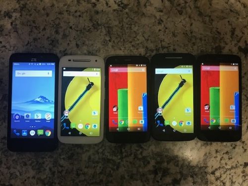 This lot contains Five Fully Functional Android Smart Phones. 4 of them are Motorola X variants and 1 is a ZTE. No damage to screens, phones operate like normal, No sim cards included. All Mobiles are in used condition.