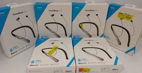 This lot features Anker SoundBuds Life Wireless Neckband Bluetooth Headphones. All of our customer return inventory is untouched and has not been inspected by us; these are raw. This is all merchandise that has been sold to an end user and returned through a retail chain, manufacturer and/or distribution centre. This manifest is 100%. All units come in the original packaging but may show signs of wear and/or have stickers.