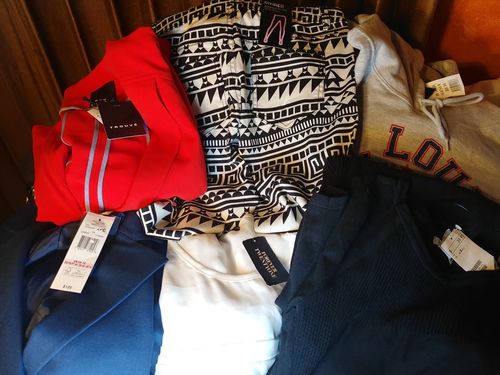 This lot includes different Apparel and Accessories from Calvin Klein, JanSport, Larry Levine, H&M, & More. Clothing includes such as coats, dress, tops and pants. check out the manifest for more details. All items are ready to sell and new with tags or nearly new with tags.