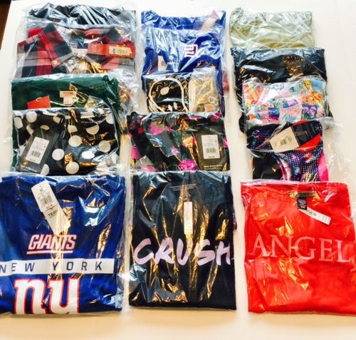 This lot features 91 units of different Hoodies, Shirts, Sweaters, Blouses, and More Men, Women, and Kids Apparel from Wrangler, Mossimo, MLB, Victoria's Secret, Champion, and More. All pieces come folded in plastic bags. All items are new and retail-ready.