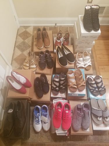 This lot includes 25 units of brand new shoes. Some are in original boxes and packaging and others not in original box. See manifest for details. The lot includes brands like ASICS, Steve Madden, New Balance, Clark's, BareTraps & more. Due to some missing and damaged boxes lot listed as shelf pulls.