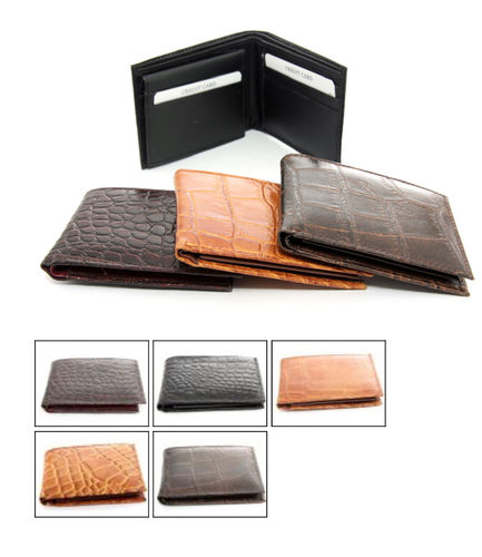 This Lot includes 36 Men's Leather Bifold Wallets. Comes in Assorted Colors: Black, Brown, Burgundy, Tan. These Wallets are Genuine Cow Leather. Features: Double Bifold, Measures 5 X 4.25