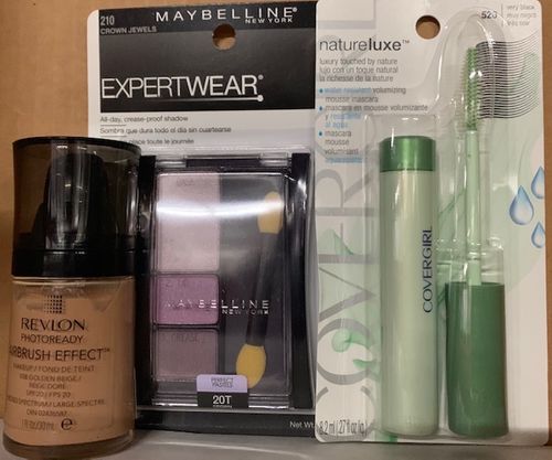 This lot includes Revlon Photoready Airbrush Effect Foundation, Maybelline Expertwear Eyeshadow, and Covergirl Ultra Smooth Foundation. All items are brand new and ready for retail. See the manifest for products breakdown.