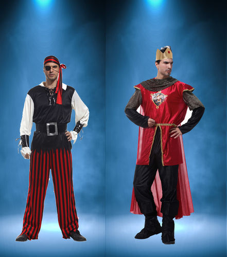 This lot includes Assorted Deluxe Halloween Costumes Dress UP for Men. Create your perfect party outfit this Halloween! Whether you want to be king for a day, sail the seven seas as a Caribbean Pirate, or were born to be the class clown - there's a costume here to suit your style. Each of the three options comes complete with a shirt, pants, and a piece of signature themed headwear, in addition to a few other special accessories to help complete the look so you can be the centre of attention at your next Halloween gathering.