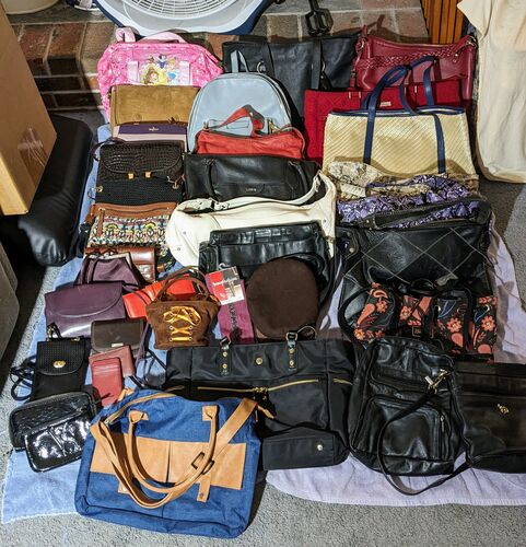 This lot contains various preowned bags, accessories, and clothing items that are being sold as part of an online business liquidation. The lot will be shipped in two large boxes, and a full inventory is available. The items are in fair to very good condition, with some having been professionally cleaned and others still needing to be cleaned. This lot is perfect for those looking to resell or restore these items.