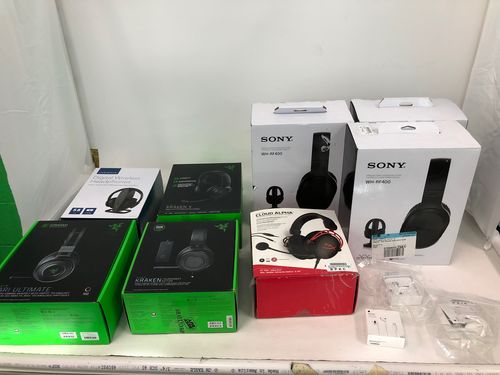 This lot includes Assorted Headsets and Earbuds. Customer returns opened to take a quick photo. May be missing accessories. Boxes have stickers, tape and are not in like new condition.