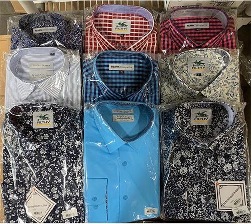 This lot includes 50 units of new with tags, Assorted Men's Shirts in many sizes, styles, and colors.