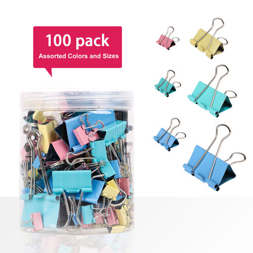 This lot includes 40 Packs of Assorted Metal Binder Clips for Document Organisation. Assorted size binder clips with assorted bright colours ( pink, blue, yellow, cyan)binder clips can meet your different needs and different styles. Some features are The fold back clip is made from premium strong metal clamps, Handles can fold up for handing or can be removed for binding since the excellent workmanship. These binder clips are made of metal material, strong and durable. Packaged in a reusable plastic container for easy storage, Perfect for the office, home and school daily use, suit for students, teachers, and so on. They can also be used for food clamps, clothes, furniture and outdoor applications. All items are brand new and ready for retail. NOTE:NO AMAZON SALE
