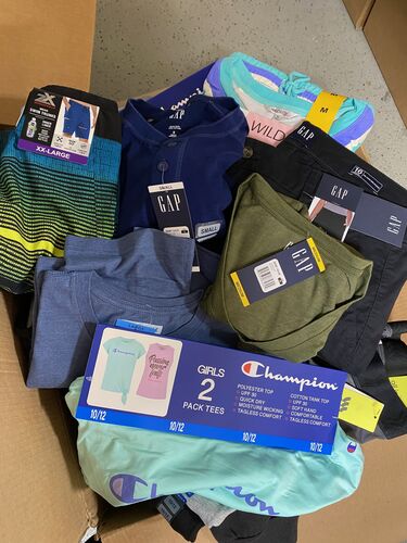 This lot includes 50 pieces of Assorted Name Brand Clothing for Women, Men & Kids. This Lot consists of 50 Pieces of Dept. Store Name Brand Clothing for Men, Women and Kids, Includes Assorted Pants, Sweatshirts, Tops, Shirts etc. Sizes are Mixed ranging from Small, Medium, Large and X Large, XXLarge. Brands include GAP, HURLEY, CHAMPION, NINE WEST, ALL IN MOTION, SOCIAL STANDARD BY SANCTUARY, Disney AND Many More Brands. A Gorgeous High-Quality Long Wool coat is included in this lot as well! The Clothing is all in New Condition with Tags.