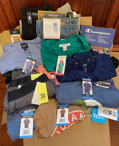 This Lot consists of 50 Pieces of Dept. Store Name Brand Clothing for Men, Women and Children. Includes Assorted Pants, Jeans, Sweatshirts, Tops, Shirts , Dresses etc. Sizes are Mixed ranging from Small, Medium, Large and X Large, XXLarge. Brands include STATE OF MINE, WEATHER PROOF, GAP, HURLEY, CHAMPION, NINE WEST, ALL IN MOTION, SOCIAL STANDARD BY SANCTUARY , JOIE , Disney AND Many More Brands! The Clothing is all in New Condition with Tags.