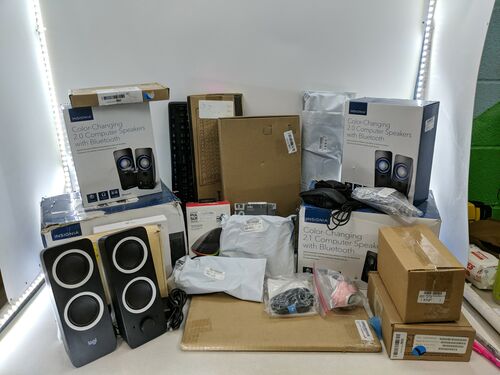 This lot includes Assorted PC Accessories by Microsoft, Logitech, HyperX & More. All customer returns. May be missing accessories. Boxes have stickers, and tape and generally have wear. Product packaging may be missing. Products may be repackaged or polybagged.