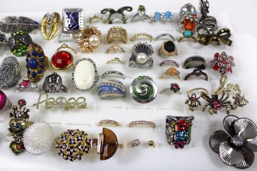 This lot includes 1,047 units of assorted stylish ring for women and more fashion jewelry. The lot is unmanifested and rings size range from 6 to 10. Some of the rings come loose, some have individual packaging, and not all items will have retail-ready packaging.