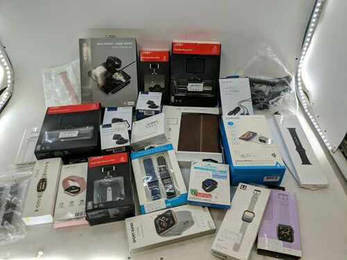 This lot includes smart watch accessories. All customer returns. May be missing accessories. Boxes have stickers, and tape and generally have wear. Product packaging may be missing. Products may be repackaged or polybagged.