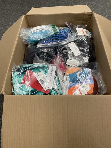 This lot includes Women's Swimwear including Bikini Tops, Bikini Bottoms, One Piece Swimsuits, and Tankini Tops. Some swimwear in this lot are packaged in polybags and some are not packaged in polybags. Most swimwear has original tags with MSRP on them. All are in good condition with no defects or damage. Brands include: Swim Solutions, La Blanca, Lauren Ralph Lauren, Island Escape, Hula Honey, Nike, Vince Camuto, Anne Cole, Michael Kors, Trina Turk, Soluna, Go Gossip, Spanx, INC, MagicSuit, Crazy Men, Reebok, Coastal Blue, Vera Bradley, and Bleu Rod Beattie. This lot has an MSRP value of $4574 with 61 items. This lot is substantially discounted because it consists of Returns even though the condition of the items is very good.