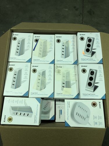 This lot includes different Charge Stations, Towers, Pads, and Desktop Surge Protector from Atomi. All items have multiple Charging Ports. These items are all uninspected customer returns. Due to this some items may or may not include all the parts/pieces. All items come in their original retail box.