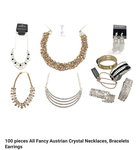 This lot includes 100 PIECES HIGH-QUALITY AUSTRIAN CRYSTAL NECKLACES, BRACELETS, EARRINGS