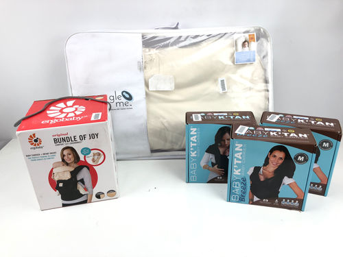 This lot includes multiple baby items from Baby K'tan, Dreambaby, Snuggle Me Organic, and More. All of the items are returns form customers.