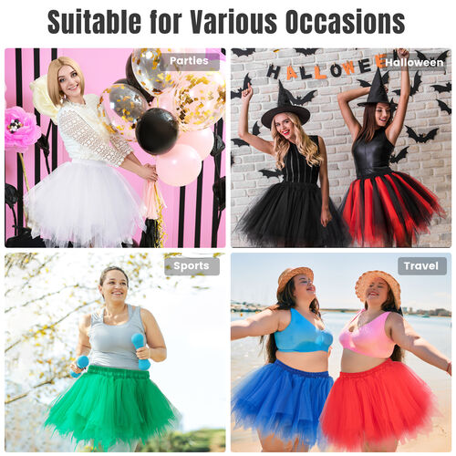 This lot includes Ballet Tutu Skirts - Halloween Christmas Skirt. Features: tulle skirt, adjustable elastic waist, more fluffy and beautiful. Size: Regular Size Waist: 23.6-43.3 inches. Plus Size Waist: 33.4-55.1 inches; Length 18.8-19.6 inches, knee length.