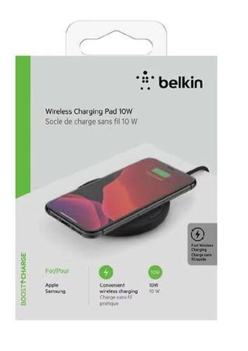 This lot includes 25 units of Belkin 10w Wireless Charging Pads in a retail box. Customer Returns.