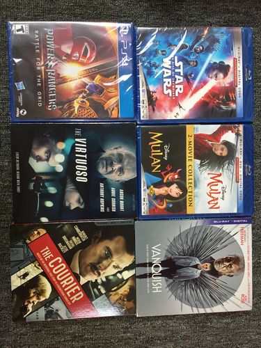 This lot includes Blu Ray Discs, Star Wars 4K DVDs, Phone Cases & More. All brand new. May show minor signs of shipping wear.