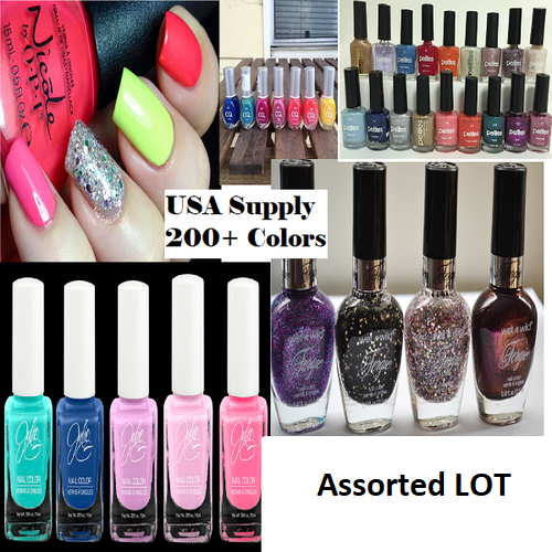 100x Bottles of high quality assorted nail polish including brands from Bonita, CC, OPI, Fergie Wet and Wild, Julie, Bonita, CQ, Petites, and many more. What you get will be 100% random, but very assorted. These are new, but a few bottle may need to be cleaned.