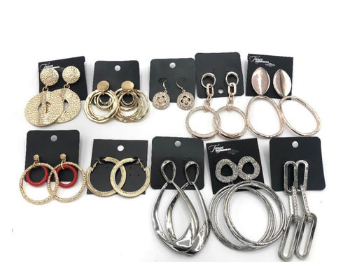 This lot includes 50 Pairs of Assorted High-Quality Earrings. Plated in GOLD,SILVER, RHODIUM, ROSE GOLD, AUSTRIAN CRYSTAL. Hypoallergenic Post. Nickel & Lead-free