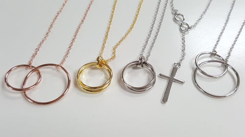 | Dear Ava | Women's Necklace - 2 Interlocking Large + Small Circles in Silver Tone w/ notelet + presentation box | Brand New | X001SEQDWH | $15 | 27 | $405 | |