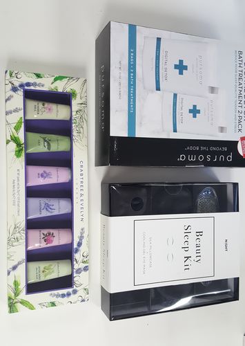 This lot features a mix of brand new + shelf pull Women's Health & Beauty / Detox items - Bath Soaks, Hand Creams and Sleep Kits. There are 46 pieces in this lot. Please see the manifest and pictures for details.