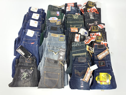 This lot includes 25 units of New with Tags Boy's Assorted Fashion Denim Jeans. Assorted Brands, Sizes and Washes. See the manifest for sizes breakdown.