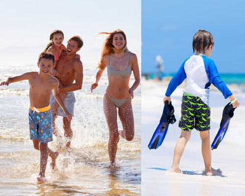 These super-sweet kids' trunks are made with top quality quick-drying fabric with a UPF 50+ sun protection rating. They tie with a drawstring for a perfect fit on any child and feature reinforced stitching for added durability. Available in your choice of several absolutely adorable sea critter designs, your child can splash around in both style and comfort. Lightweight fabric won't get weighed down with water so it's perfect for beginner swimmers who want to look cool by the pool! X-Small(2 Years): Waist: 17.3", Length: 11.6". Small(3 Years): Waist: 18.1", Length: 12.2".