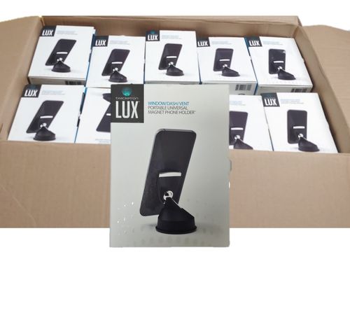 This lot contains 46 units of Bracketron Lux Magnetic Holder for Mobile Phones - Black/Silver. These are uninspected customer returns and sold as-is. All of our customers returned inventory has not been inspected by our facility. Units may have return labels and/or stickers. As customer returns, there is no guarantee regarding functionality. All of the items have the original retail box.