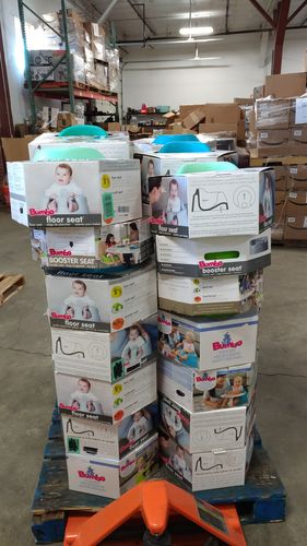 This lot consists of Bumbo multi seats, floor seats, and booster seats in various colours. These units were returned for unknown reasons. Some of these units do have some minor packaging damage but the units themselves are in good condition overall. Some units may have dust from storage. All units are uninspected returns from customers. See the manifest for products breakdown.