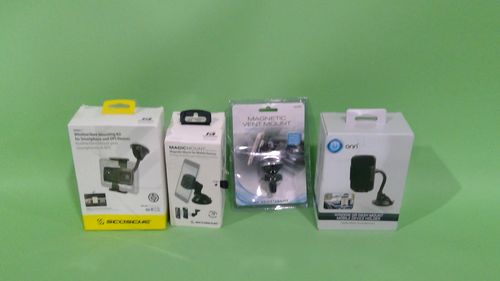 This lot holds different Car Mounts, Phone Holders, and More By iOttie, Scosche, & More. All of our customer return inventory has not been inspected by our facility. Merchandise has been sold to an end user and returned through a retail chain, manufacturer and/or distribution centre. All images are a representation of the actual merchandise. Units may have return labels and/or stickers.