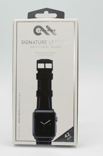 This lot includes Case-Mate Apple Watch Band - 42mm - SIGNATURE LEATHER - Series 3. New in retail box, Lot of 50 Pieces of Case-Mate Apple Watch Band - 42mm - SIGNATURE LEATHER - Series 3 in the color Black. Features: Compatible with 42mm Apple Watch Series 3, Series 2, and Series 1, Genuine leather band for 42mm Apple Watch, Signature logo-engraved clasp, and Fits wrist sizes: 165mm - 210mm.
