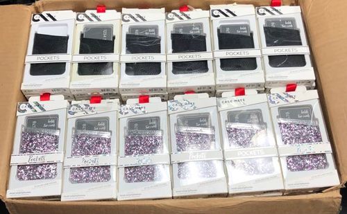 This lot contains 73 units of Glitter Case Mate Stick on Card Holders and 72 units of Black Case Mate Stick on Card Holders. The items in this lot are all in Brand New condition. Check the manifest for product breakdown.