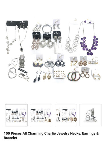 This lot includes 100 Pieces of All Charming Charlie jewellery. A mixture of Necklaces, Bracelets, and Earrings. All of the items will have Charming Charlie tags, Each piece will have retail prices. Each piece is individually bagged. ALL NEW NOT STORE RETURNS. Each piece is individually bagged. NO JUNK- All Highest Quality Jewelry. Excellent lot for Resellers - Boutiques- Stores