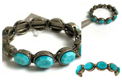 This lot includes 20 Chico's Bracelets Stunning Turquoise Antique Gold Magnetic Bangle. Pre priced and string tag $29.00 each