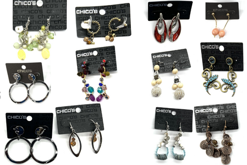 This lot includes 24 CHICO'S EARRINGS. You will receive 2 pairs each as shown in the picture. Limited Supply. ALL new not store returns.