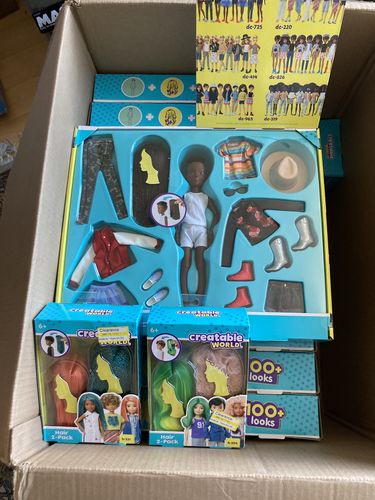 This lot includes assorted Children's Toys from Peak a Box, Creatable World, and More. Items are in mixed condition; shelf pulls and new. All items are in great condition. Includes more than 20 doll sets. Please see the manifest for inventory breakdown.