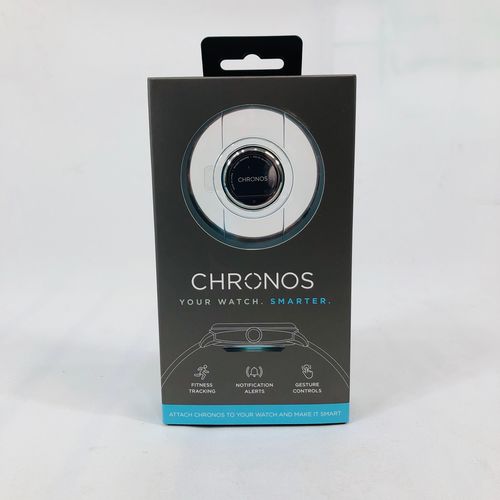 This lot includes 67 units of Chronos Smart Discs for Watches. This can attach to the back of your watch and connects to the phone via Bluetooth. Some features are fitness tracking, notification alert, and gesture control. All items are new and retail ready.