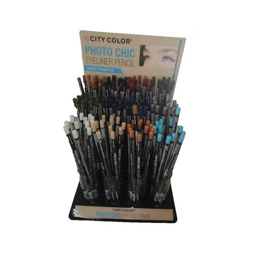 This lot includes 288 City Color Photo Chic Eyeliner Pencil Assorted colours, display pack as shown.
